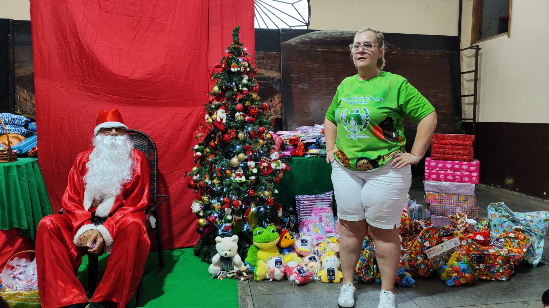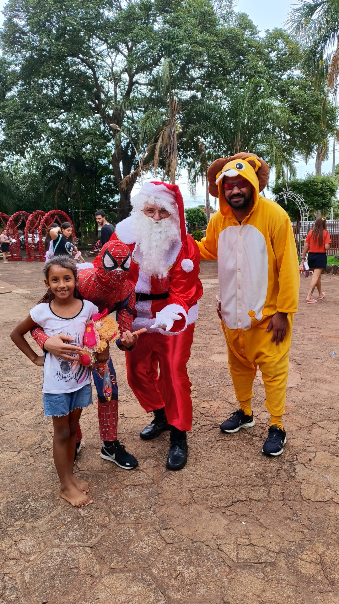 No final da tarde, após a chegada do Papai Noel, houve a entrega de doces e presentes.