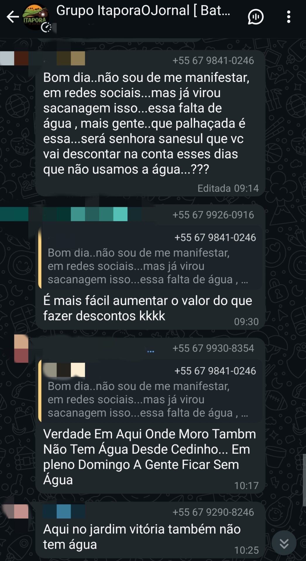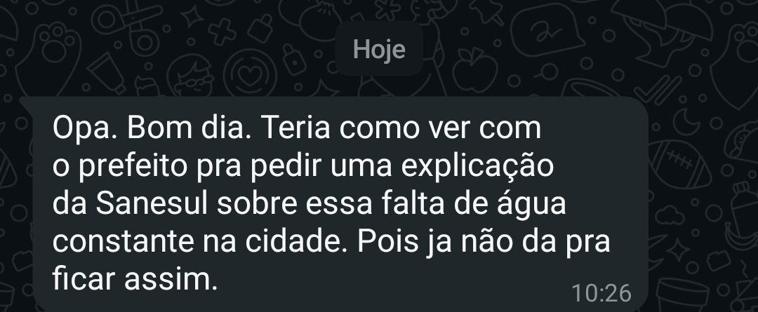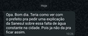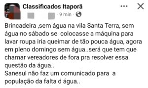 Nesta data, não foi emitido nenhum comunicado da Sanesul, motivo de maior revolta, pois além da falta de água constante, não houve um aviso sequer à população.