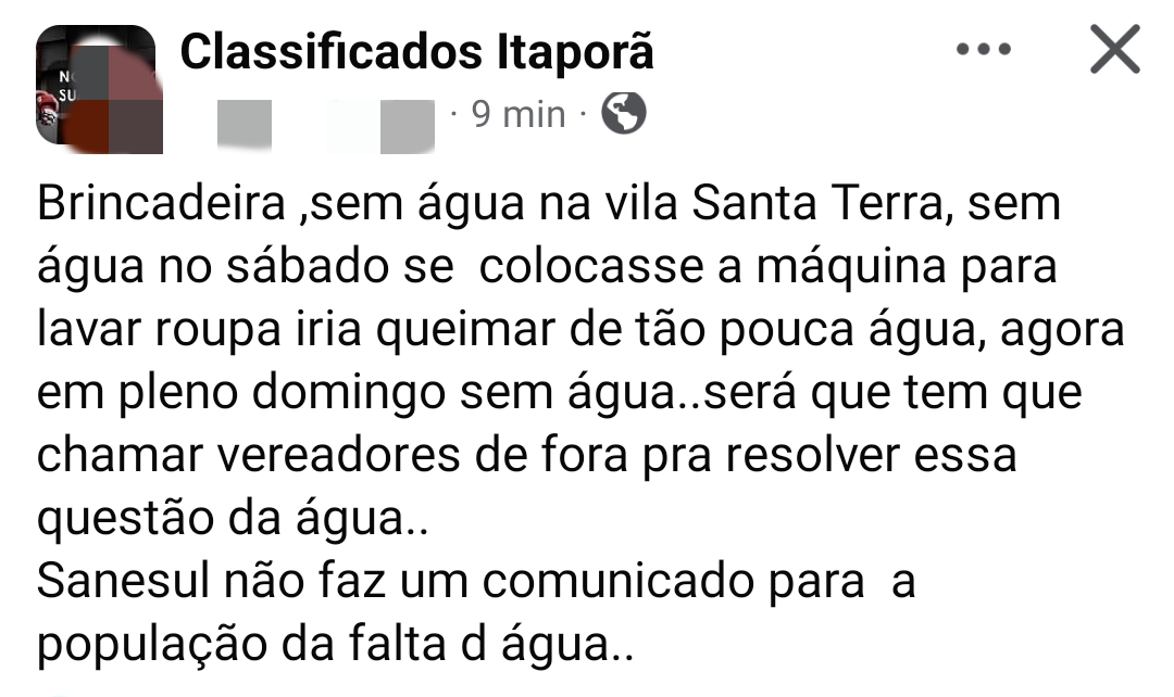Na manhã deste domingo (06), vários Itaporaenses entraram em contato com a redação do site Itaporã O Jornal, informando sobre a falta de água no município.