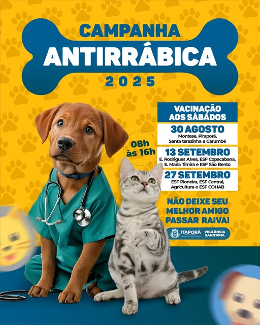 “Vacinar os animais é um ato de responsabilidade e cuidado com a saúde pública. Contamos com o apoio dos tutores para garantir que Itaporã continue livre da raiva”, destacou o gerente de Saúde Pública.