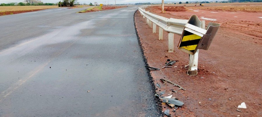 Itaporã: veículo colide com guard-rail em anel viário ainda não inaugurado