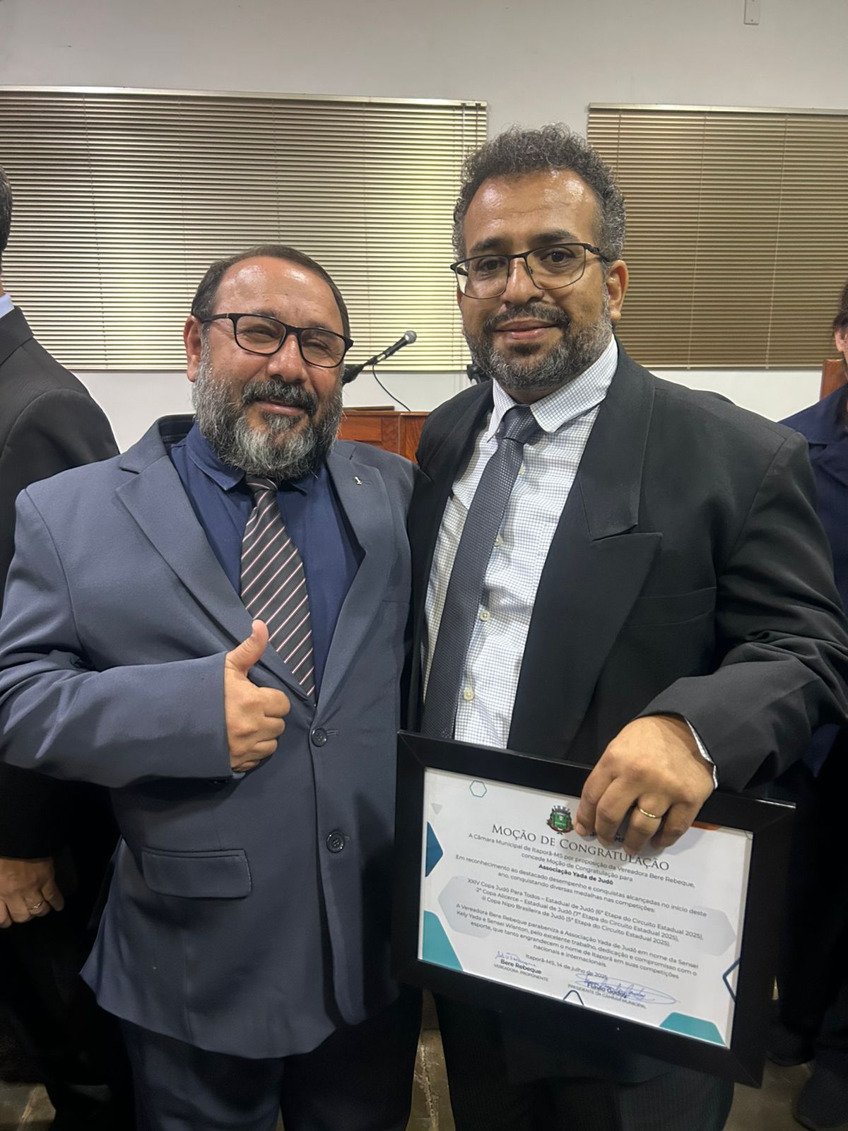 A honraria, de autoria da vereadora Bere Rebeque, destacou o empenho da Associação no desenvolvimento esportivo e social de crianças e jovens, promovendo valores como disciplina, respeito, humildade e perseverança — pilares fundamentais do judô. A sessão solene contou com a presença do prefeito Tiago Carbonaro, além de diversas autoridades, familiares e convidados. O evento ganhou ainda mais destaque com a presença do governador em exercício de Mato Grosso do Sul, José Carlos Barbosa (Barbosinha), que na mesma ocasião recebeu o Título de Cidadão Itaporanense, em reconhecimento à sua trajetória pública e contribuição ao município.