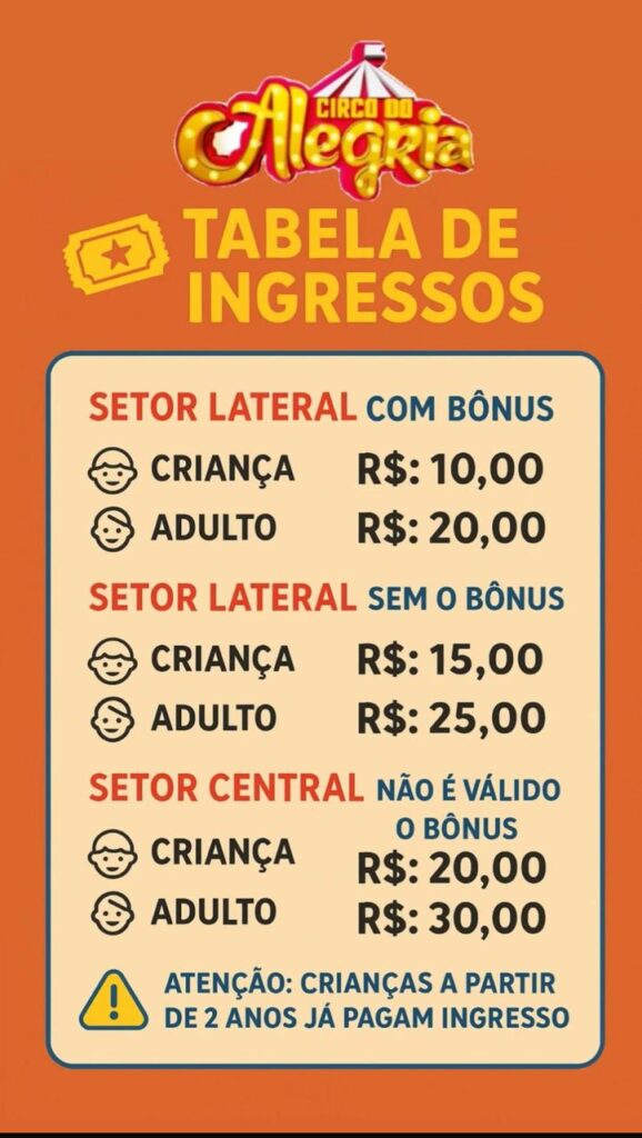 Localizado ao lado do ginásio de esportes, neste sábado e domingo o primeiro espetáculo começa às 17h e o segundo às 20h. Crianças a partir de 2 anos pagam entrada, entrada para adulto a partir de 12 anos.
