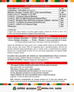 • Não fumar duas horas antes e após a doação;